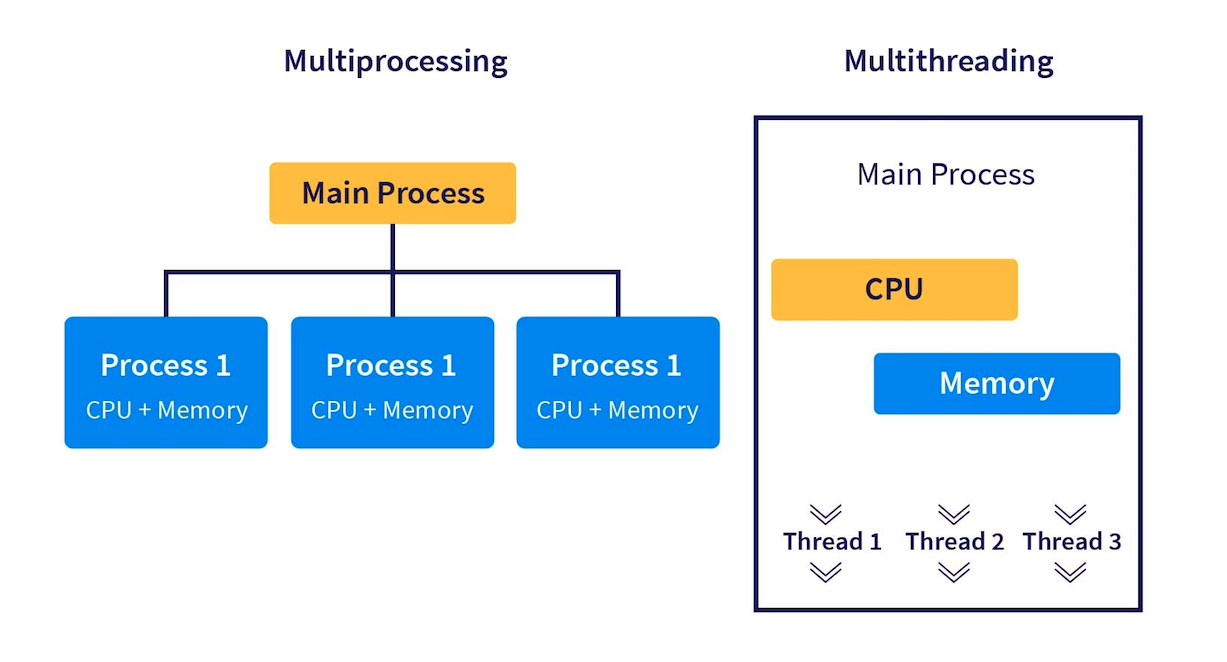 | Execution Model | Multiple threads within a single process | Multiple processes, each with its own memory |