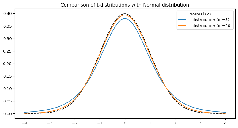 As sample size increases, this adjustment becomes negligible — and the t-distribution approaches the normal distribution.
